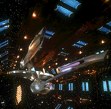 was the Starship [copy of the original Enterprise] in the parallel mirror universe. A landing party from the U.S.S. Enterprise´s was accidentally transported to the I.S.S. Enterprise during a severe ionstorm in 2267. The mirror universe´s crew were savage and , in many ways, opposite to the U.S.S. Enterprise crew; Their mission was to conquer and control worlds for the empire.